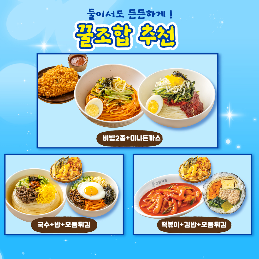 키워드: 김밥, 잔치국수, 떡볶이, 돈까스, 길동우동