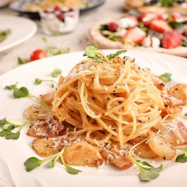 키워드: 스텔라블루베리피자, 명란오일파스타, 칠리핫쉬림프파스타, 가지파르미지아나, 스테이크