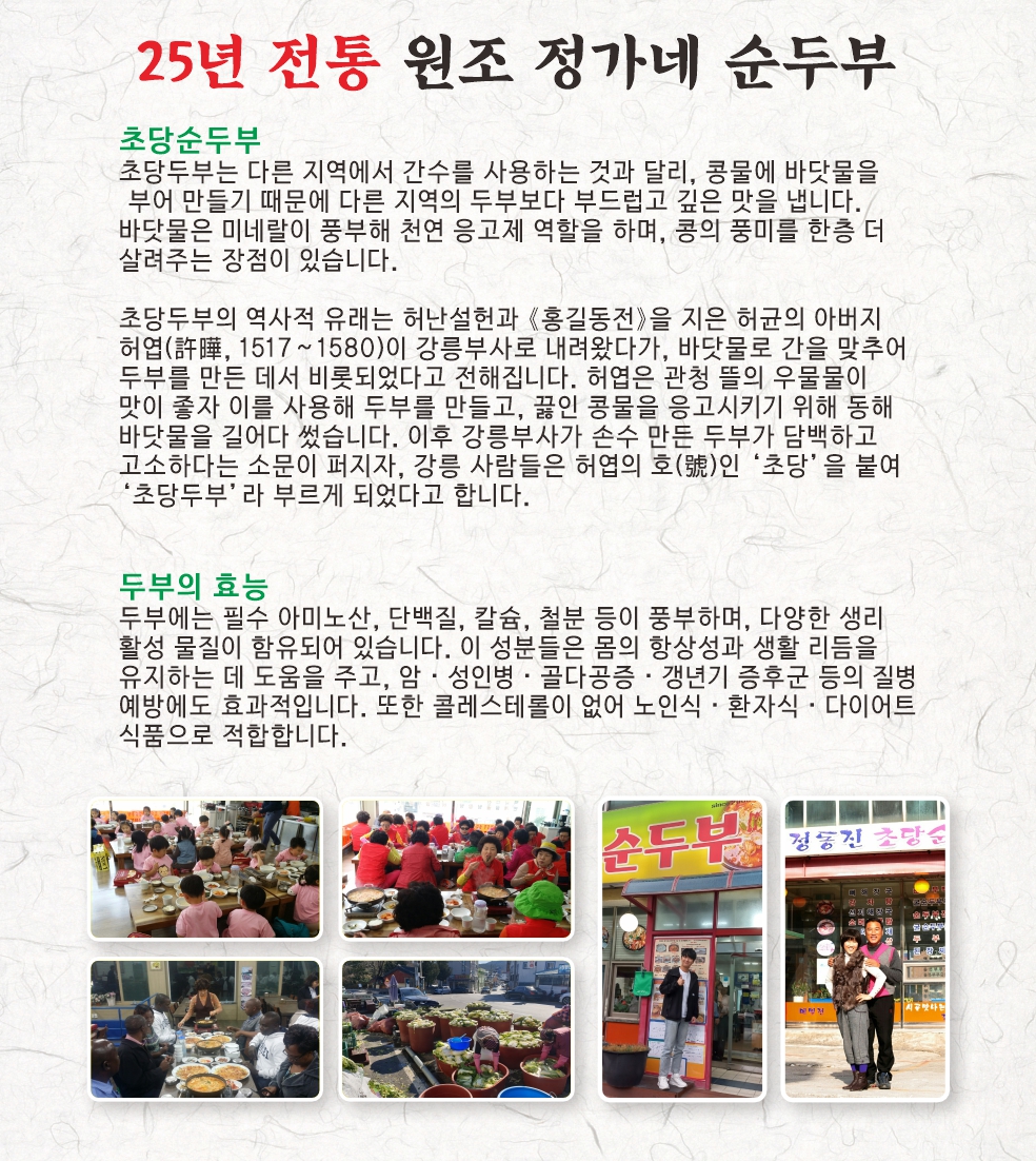 키워드: 강릉초당순두부, 강릉짬뽕순두부, 초당순두부전골, 두부전골, 모두부