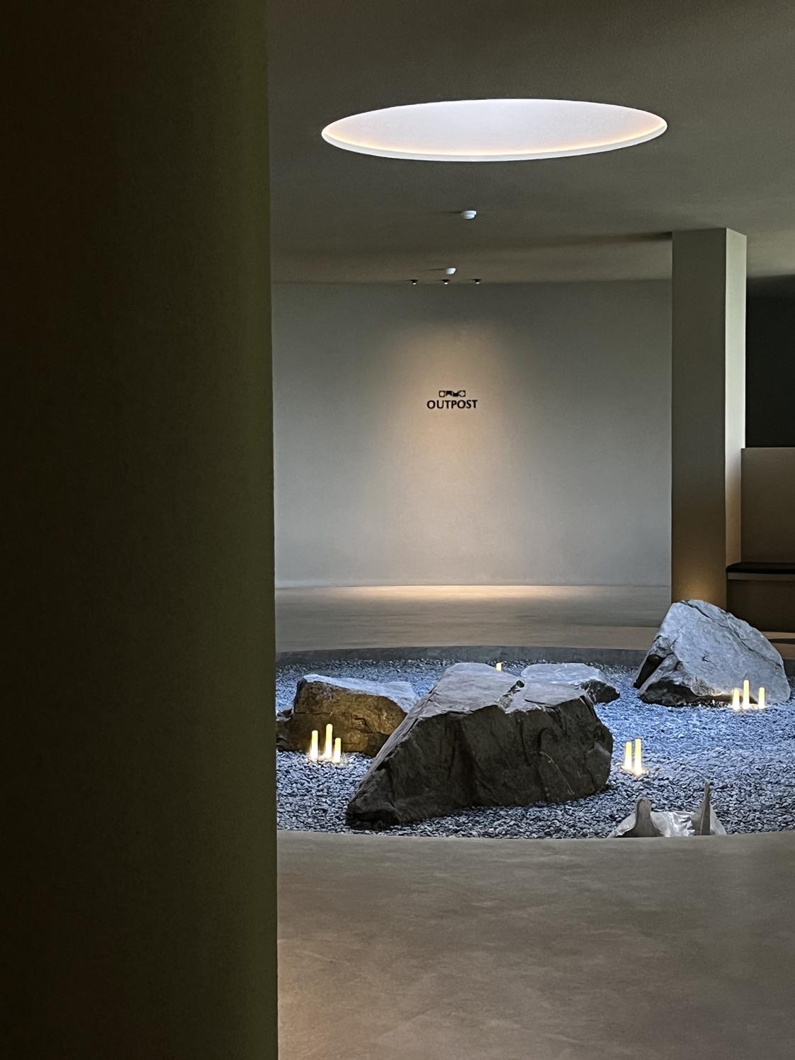 '내가면사무소' 정류장 하차 시 강화서로 따라 외포리 방향 300m 직진. 'STONERY' 라고 적힌 돌담 입구 진입 후 정면 'OUTPOST' 간판 확인.