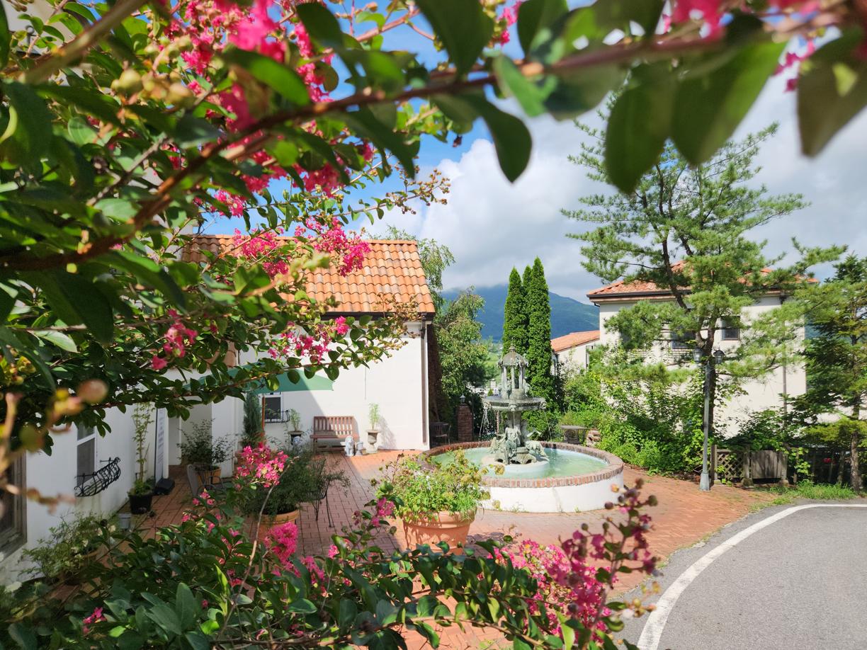 오시는 길: 차로 언덕길을 따라 올라오시면 가장 위쪽에 그린홀리데이 카페 전용 주차장이 있습니다. 분수대가 있는 건물이 그린홀리데이 카페 입니다.