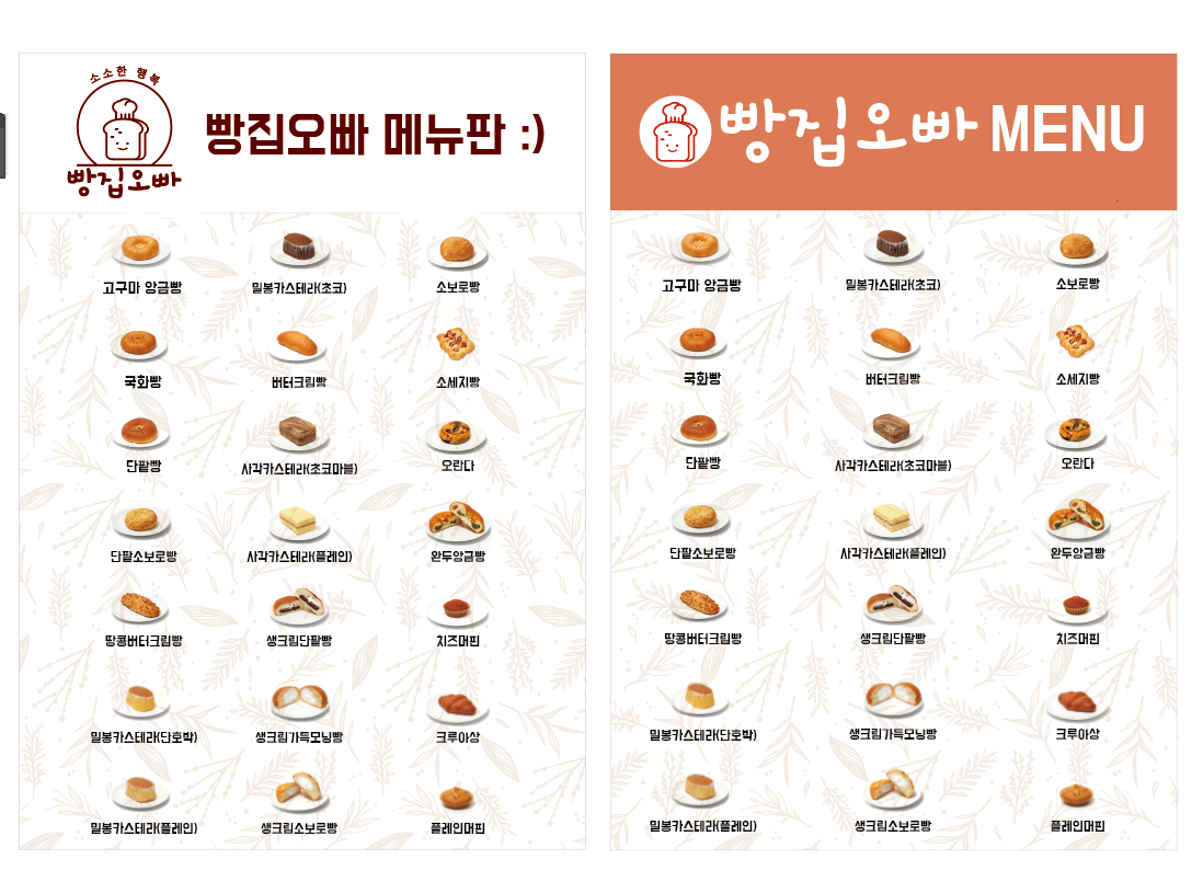 빵, 빙수종류의 단체주문은 3일전에 연락 주시면 감사하겠습니다.