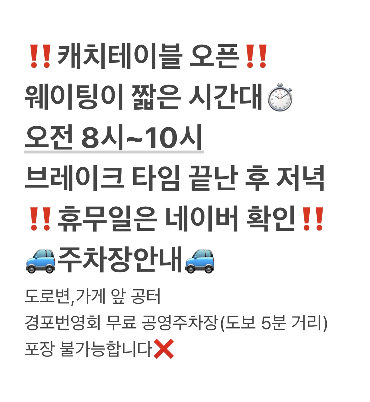 - 매장 앞 공영주차장(무료)