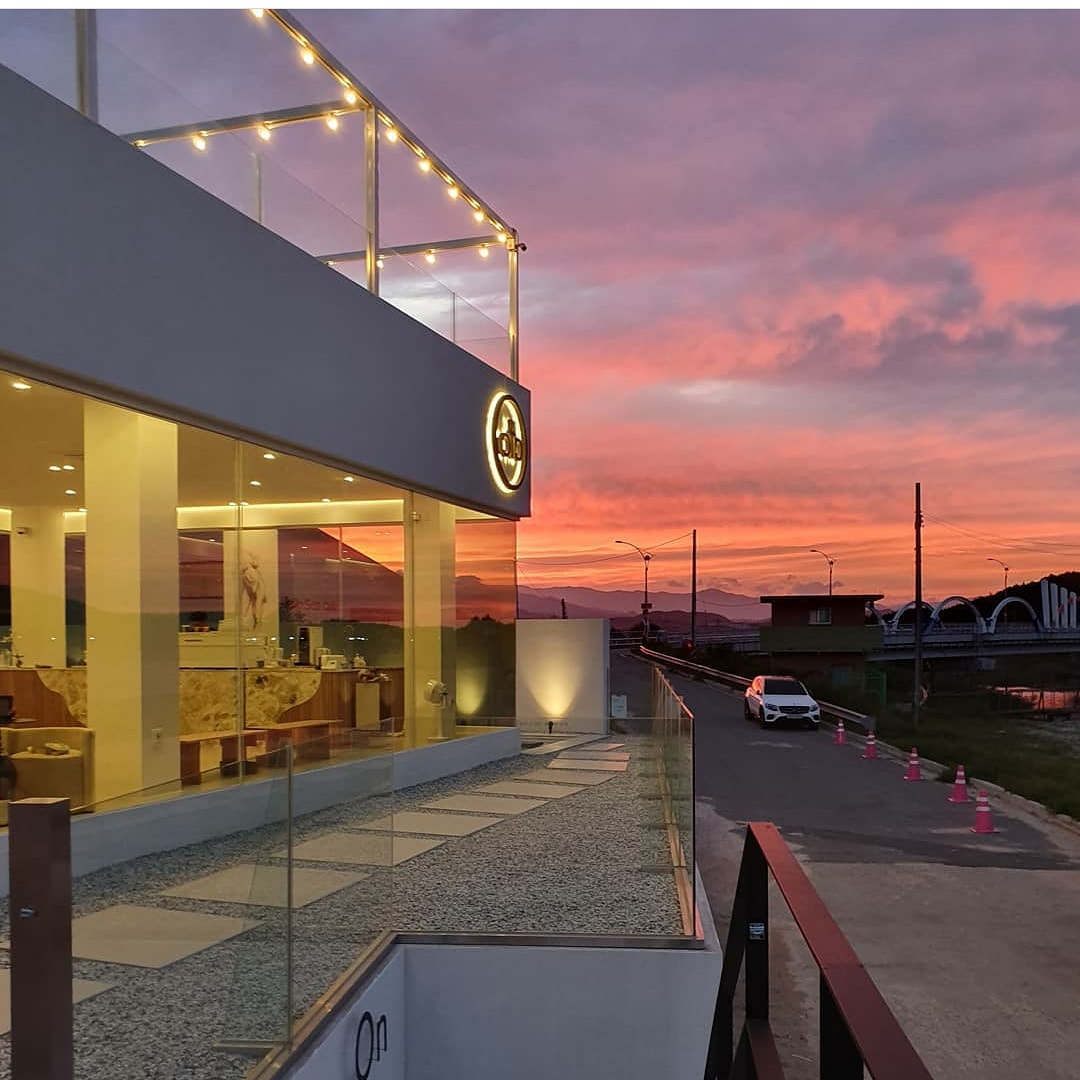 온더버튼은 루프탑이 있는 화이트톤의 단층 건물입니다.