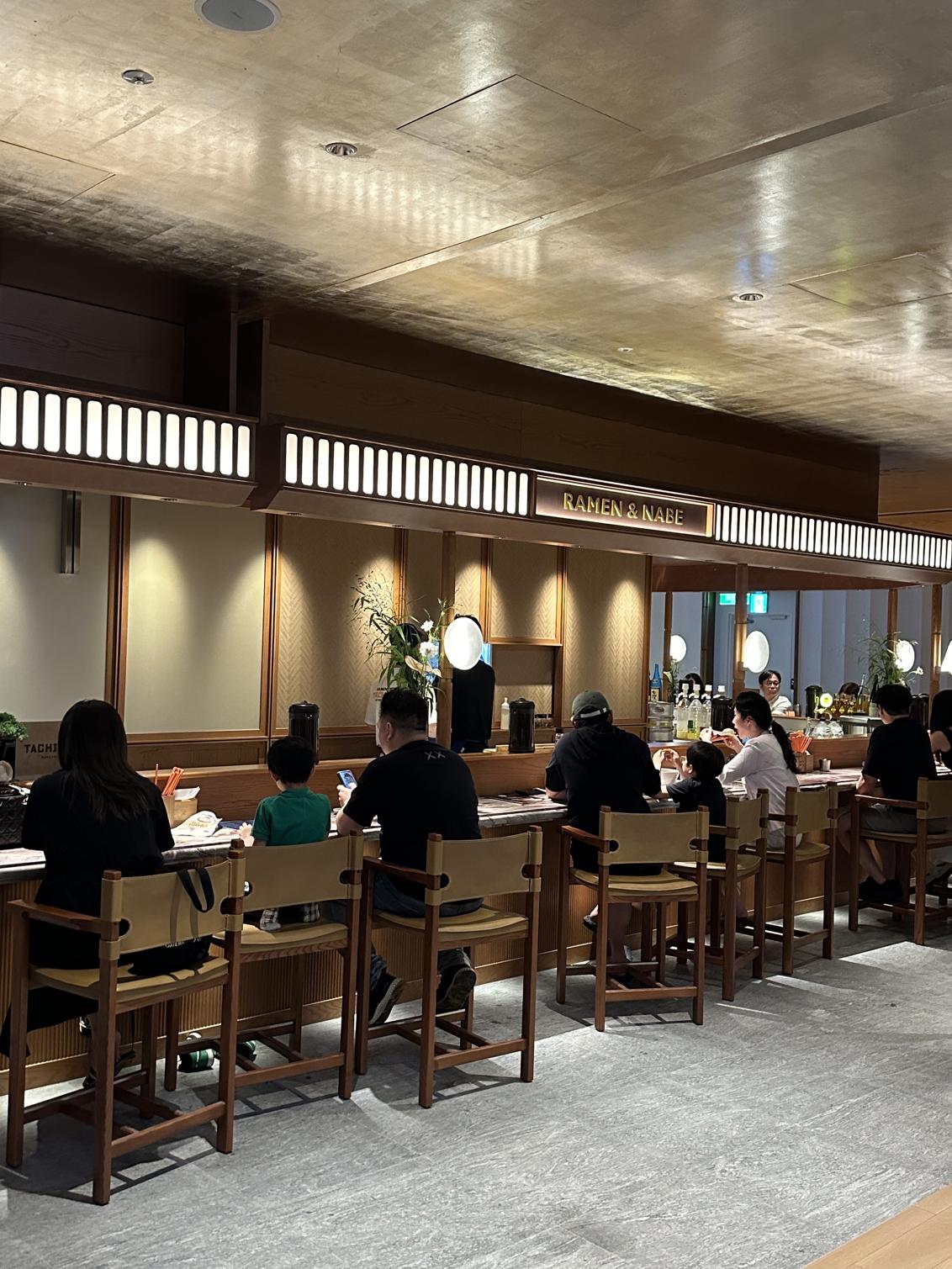 푸드코트 내 붉은색 일본 라멘 간판이 있는 곳