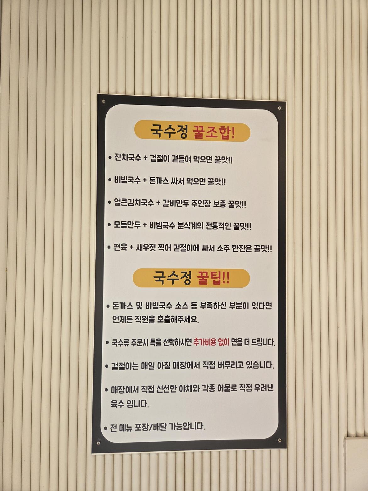 키워드: 돈까스, 잔치국수, 비빔국수, 콩국수, 얼큰김치국수