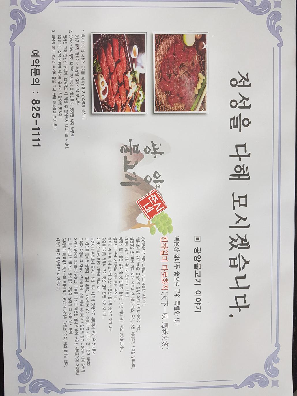 키워드: 한우, 광양불고기, 양념갈비, 육회, 등심