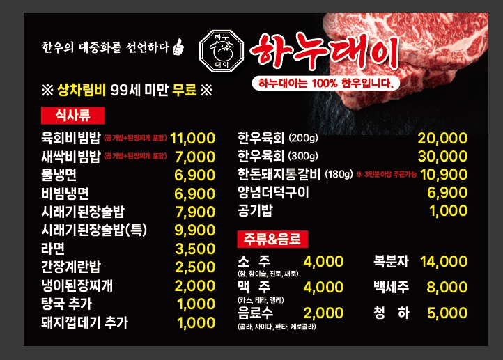 키워드: 들기름막국수, 한우육회, 한우차돌박이, 한우된장찌개, 한우등심