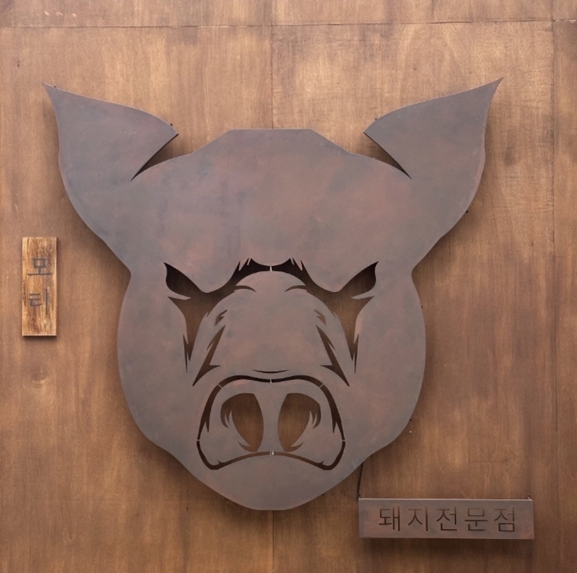 돼지머리간판이 모티입니다.