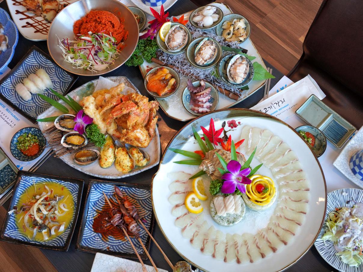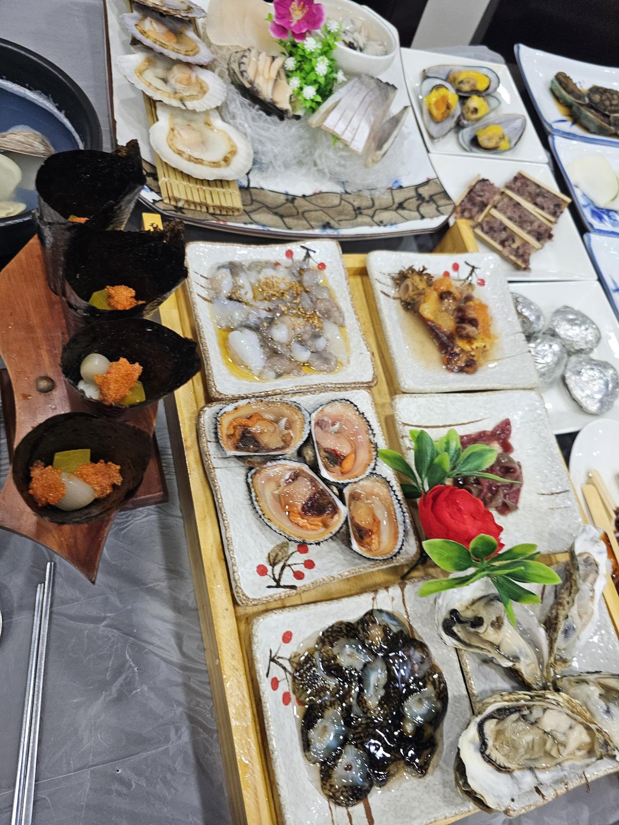 가리비구이, 대하튀김, 문어요리, 전복구이, 초밥~