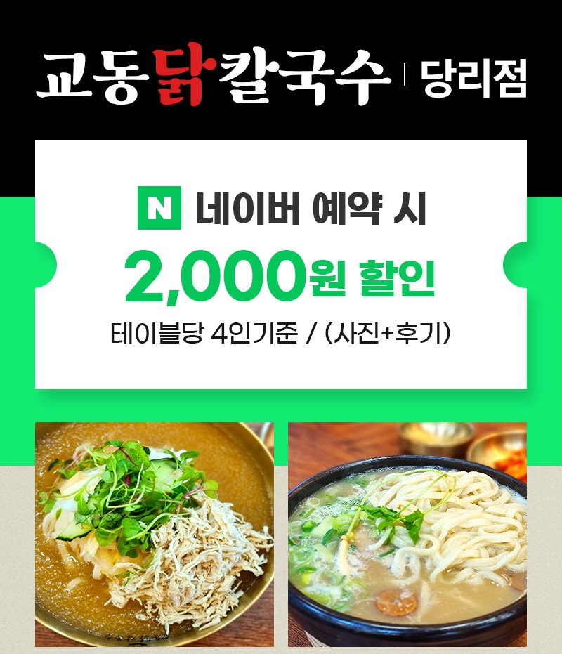 키워드: 칼국수, 닭칼국수, 당리, 콩국수, 수제비