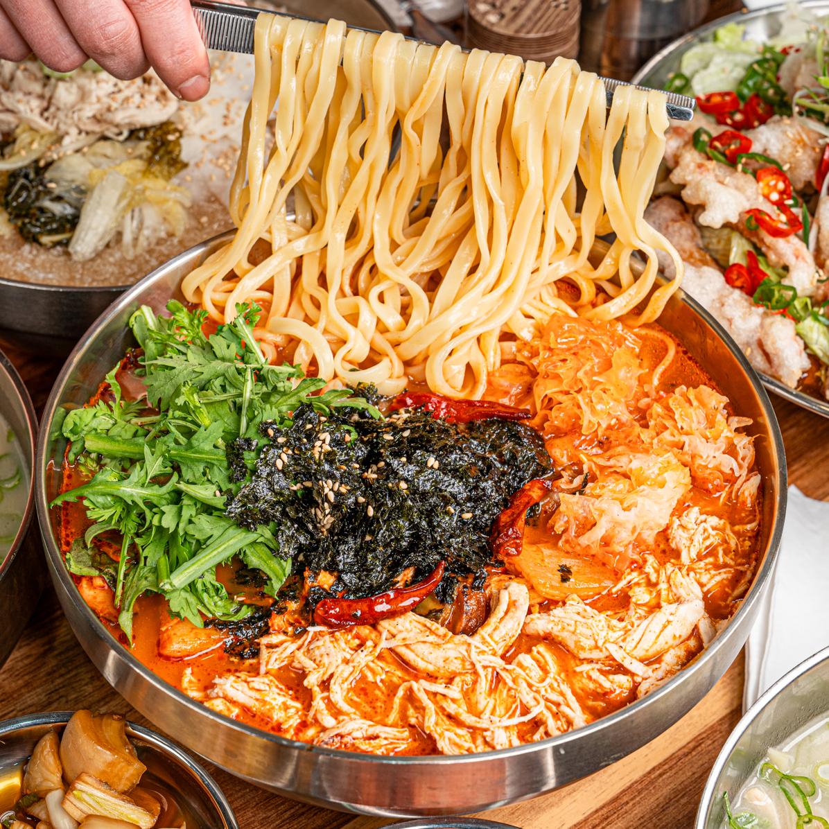 진한 닭칼국수와 유린기의 조화로운 맛