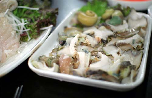 키워드: 무침회, 우럭매운탕, 소라