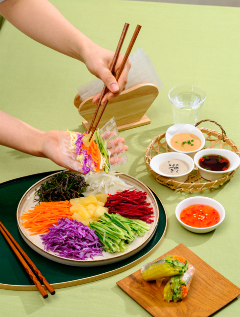 신선한 반찬과 고기의 완벽한 조합