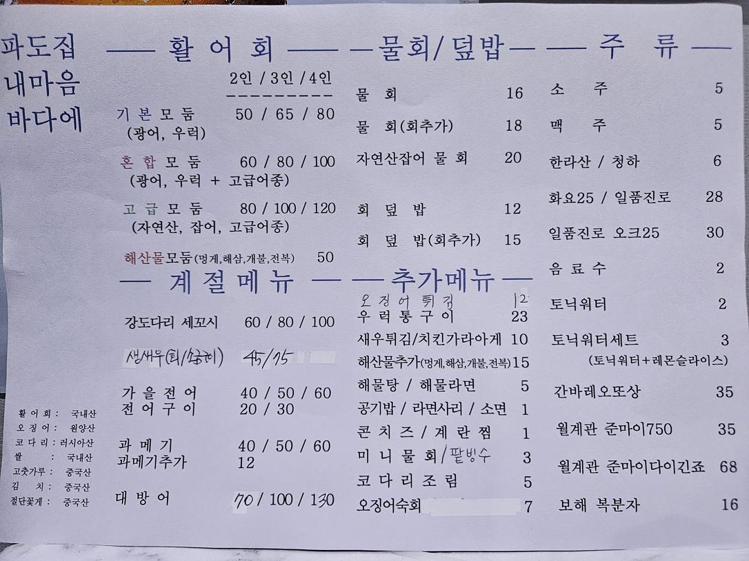 키워드: 활어회, 자연산회, 해산물, 물회, 회덮밥