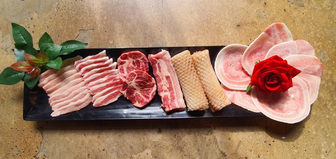 두툼한 흑돼지와 쫀득한 항정살의 조합