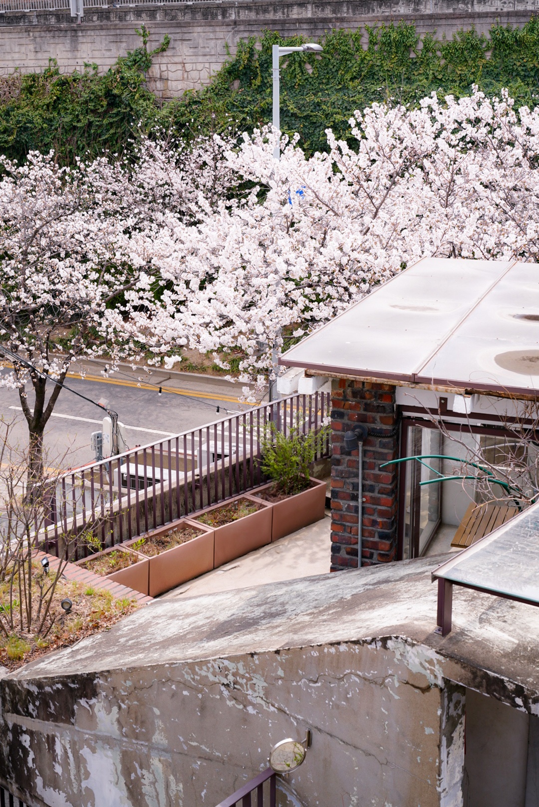 도로 좌측에 있는 공용주차장을