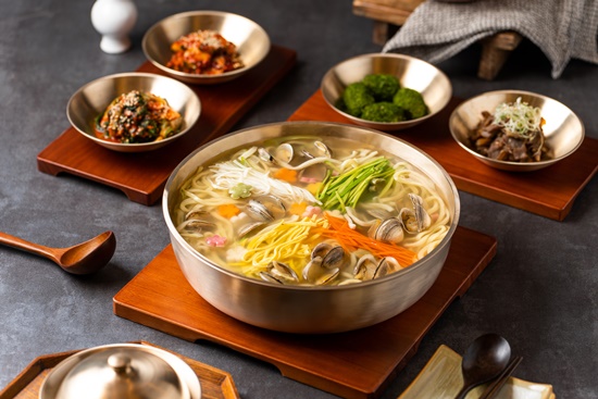 신선한 재료로 만든 시원한 물총칼국수