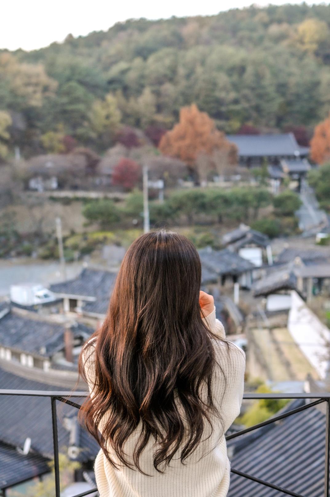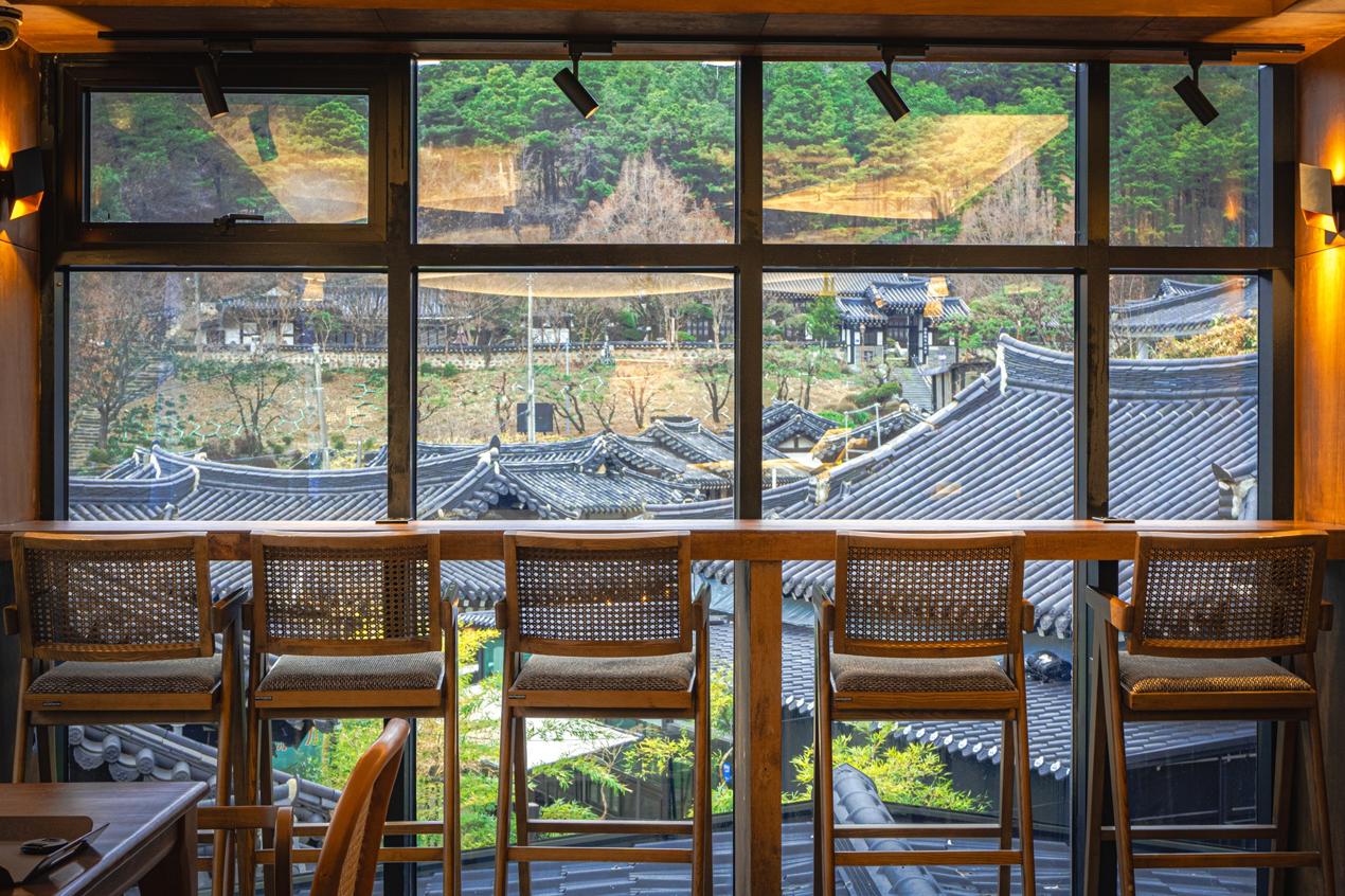 넓은 주차장과 한옥 뷰의 조화