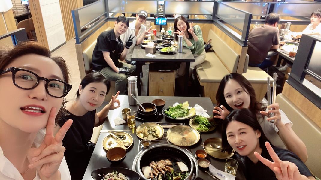 초벌된 고기로 편안한 단체 모임