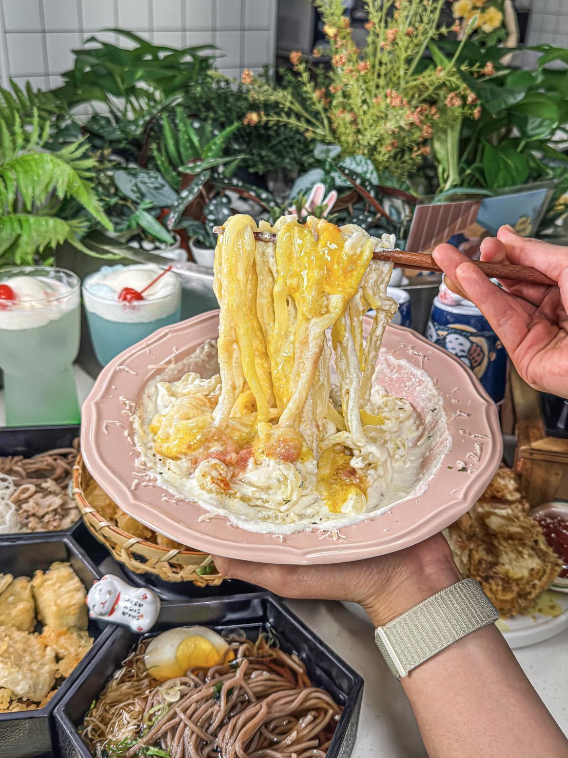 창가 자리에서 즐기는 여유로운 식사