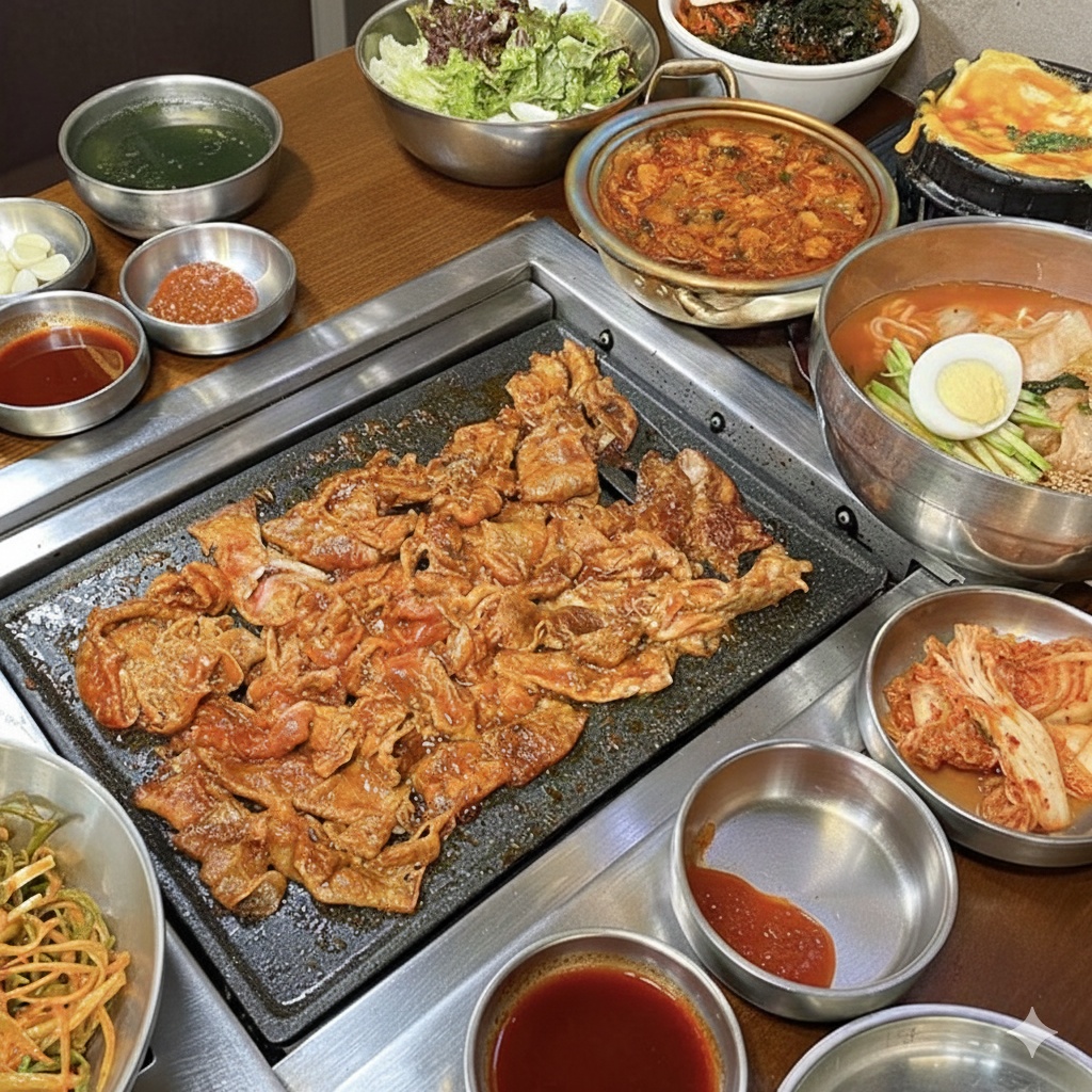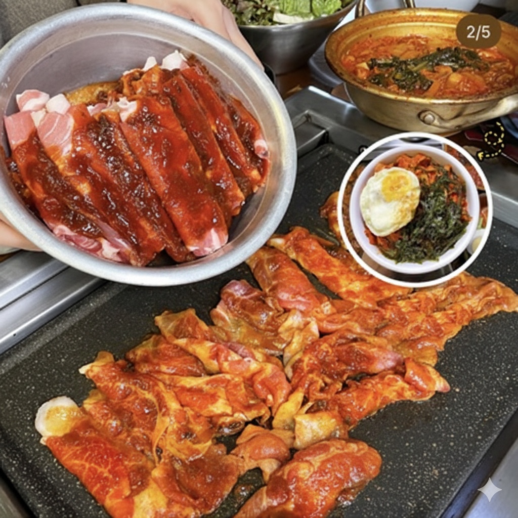 키워드: 열탄불고기, 7분돼지김치, 삼겹살, 냉김치말이국수, 더본통합할인