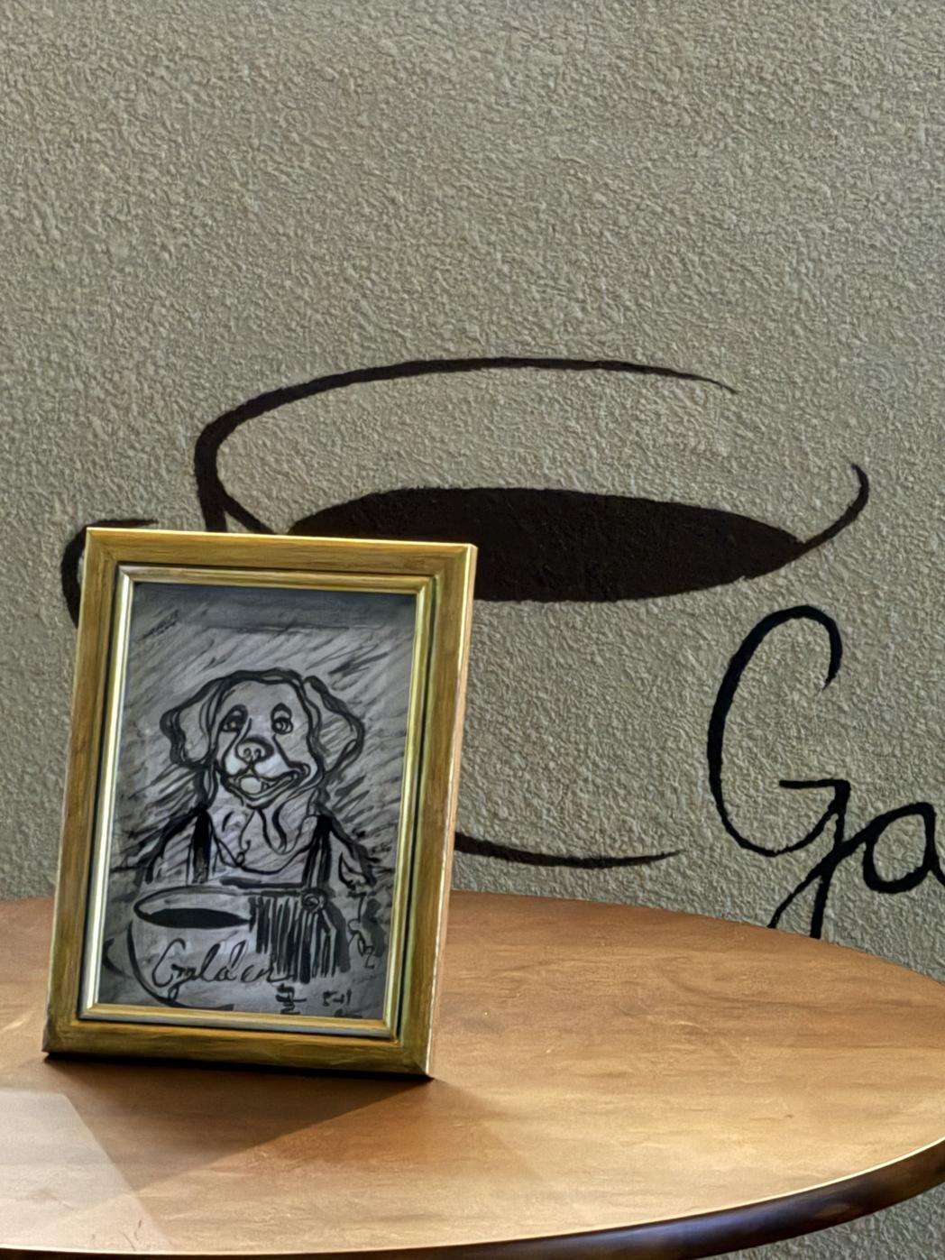 간판은 골덴 앞치마를 매고 있는 강아지 벽화로
