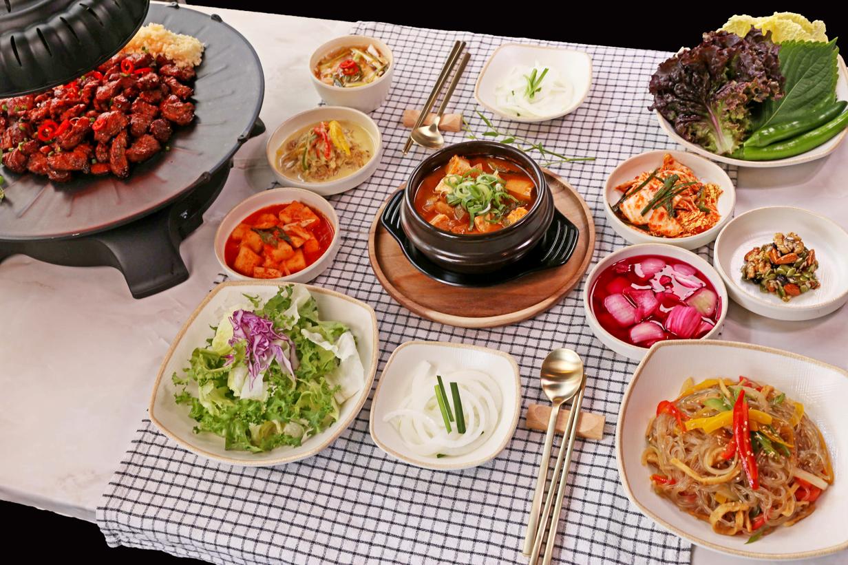 된장찌개와 어우러진 구운 고기의 조화