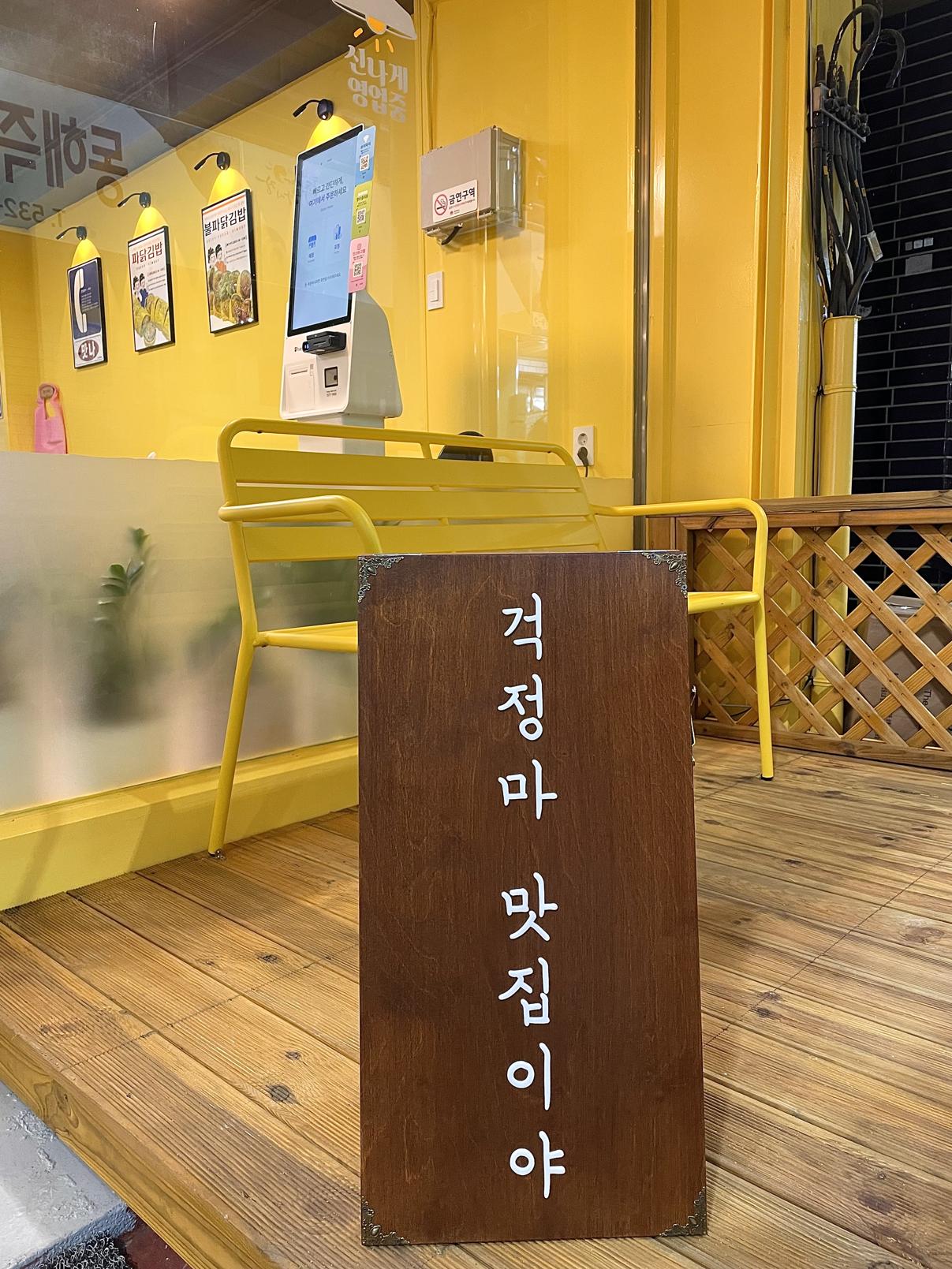 왼쪽으로 걸어오시면 노란색 간판의 파닭김밥입니다.