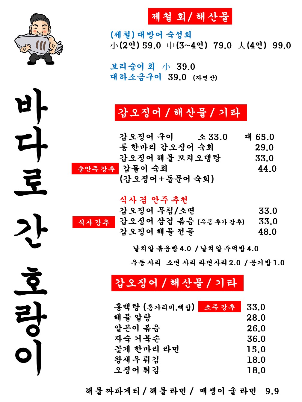 키워드: 회, 해산물, 물회, 매운탕, 참치