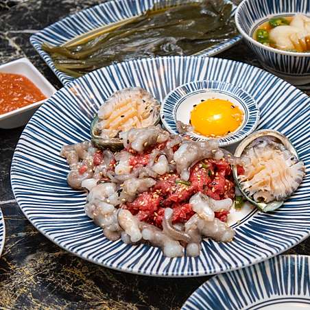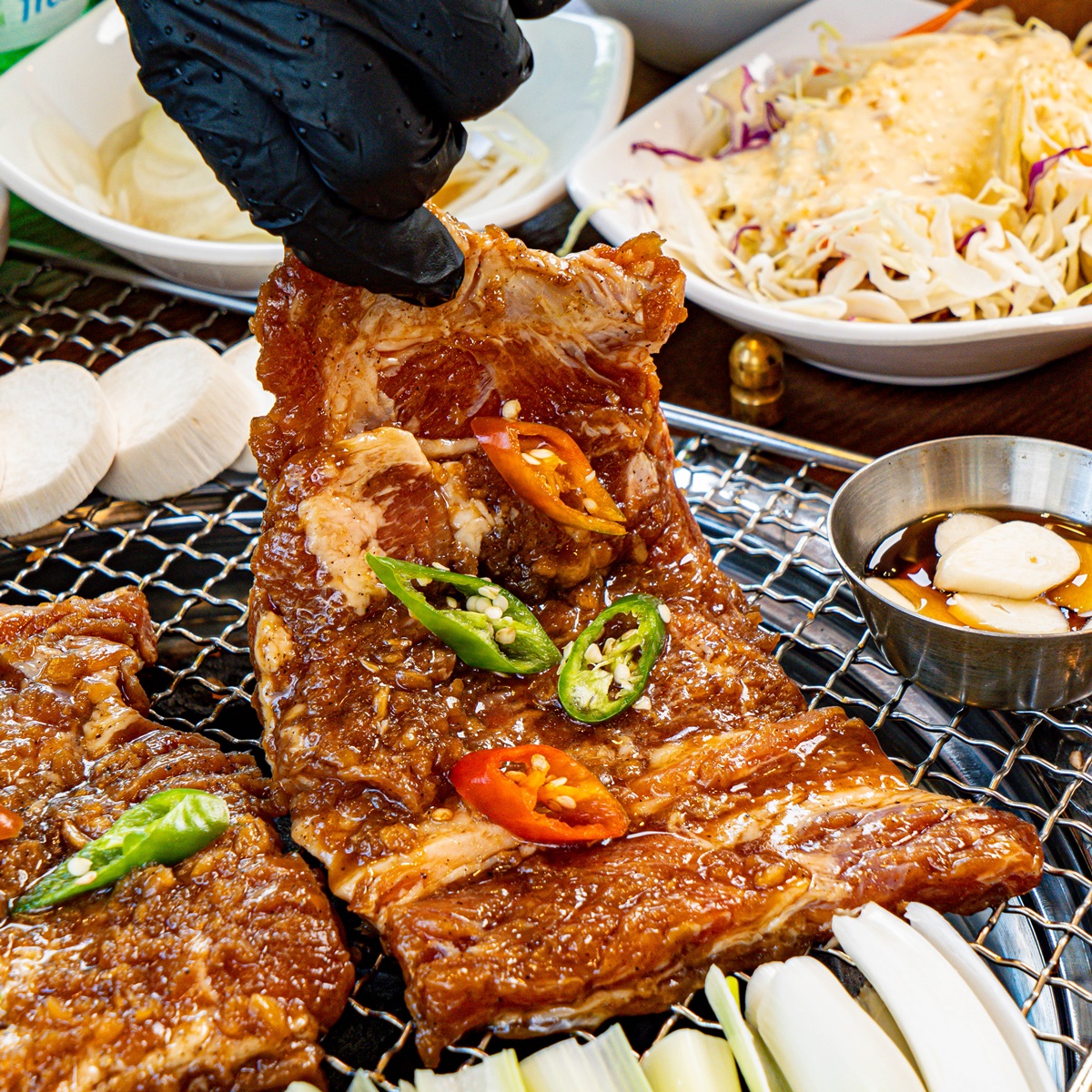 키워드: 양념돼지구이, 한우육회, 돼지갈비, 소갈비, 냉면