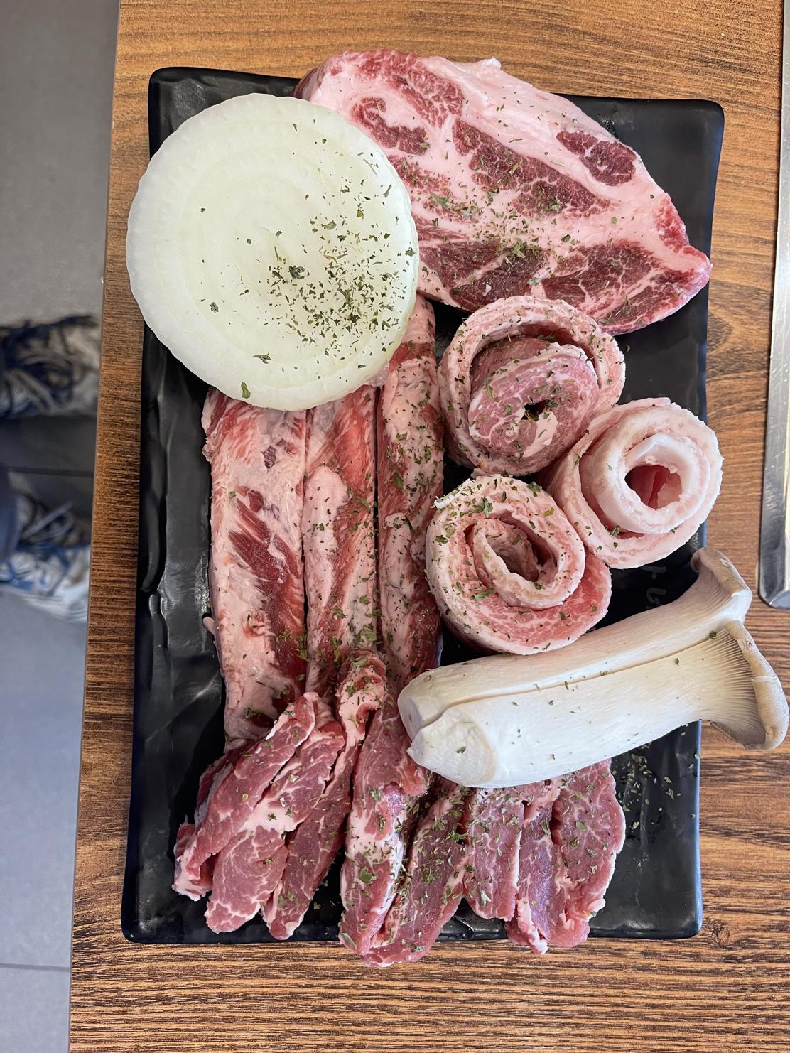 키워드: 양념돼지구이, 한우육회, 돼지갈비, 소갈비, 냉면