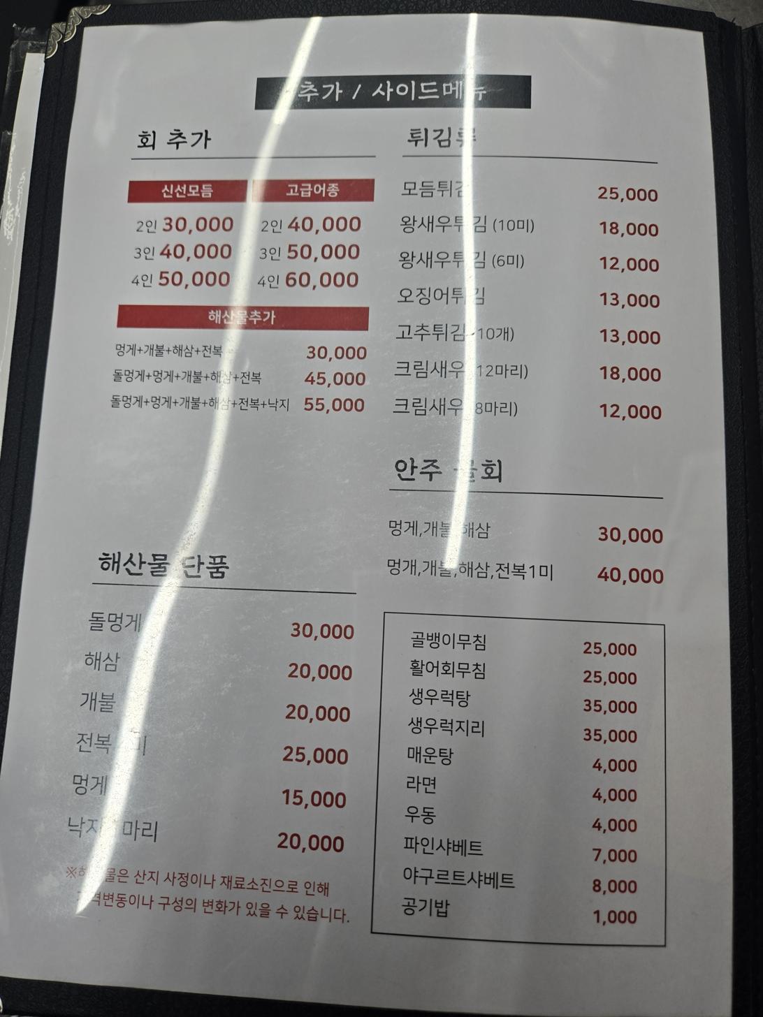 키워드: 겨울대방어, 물회, 전복죽, 돌멍게, 밀푀유나베