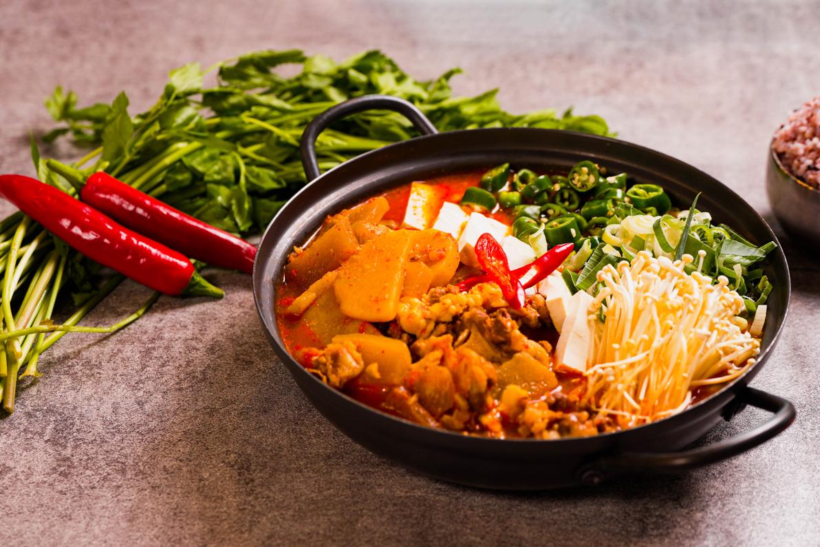 서비스 김치찌개와 함께 즐기는 만찬