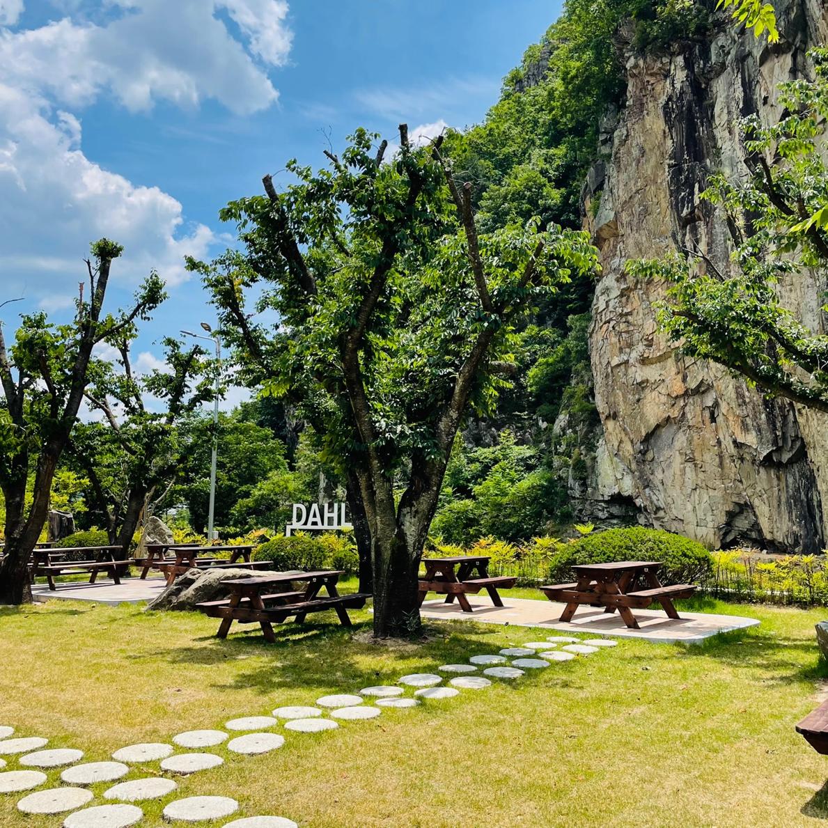암벽을 바라보며 즐기는 한 잔의 여유