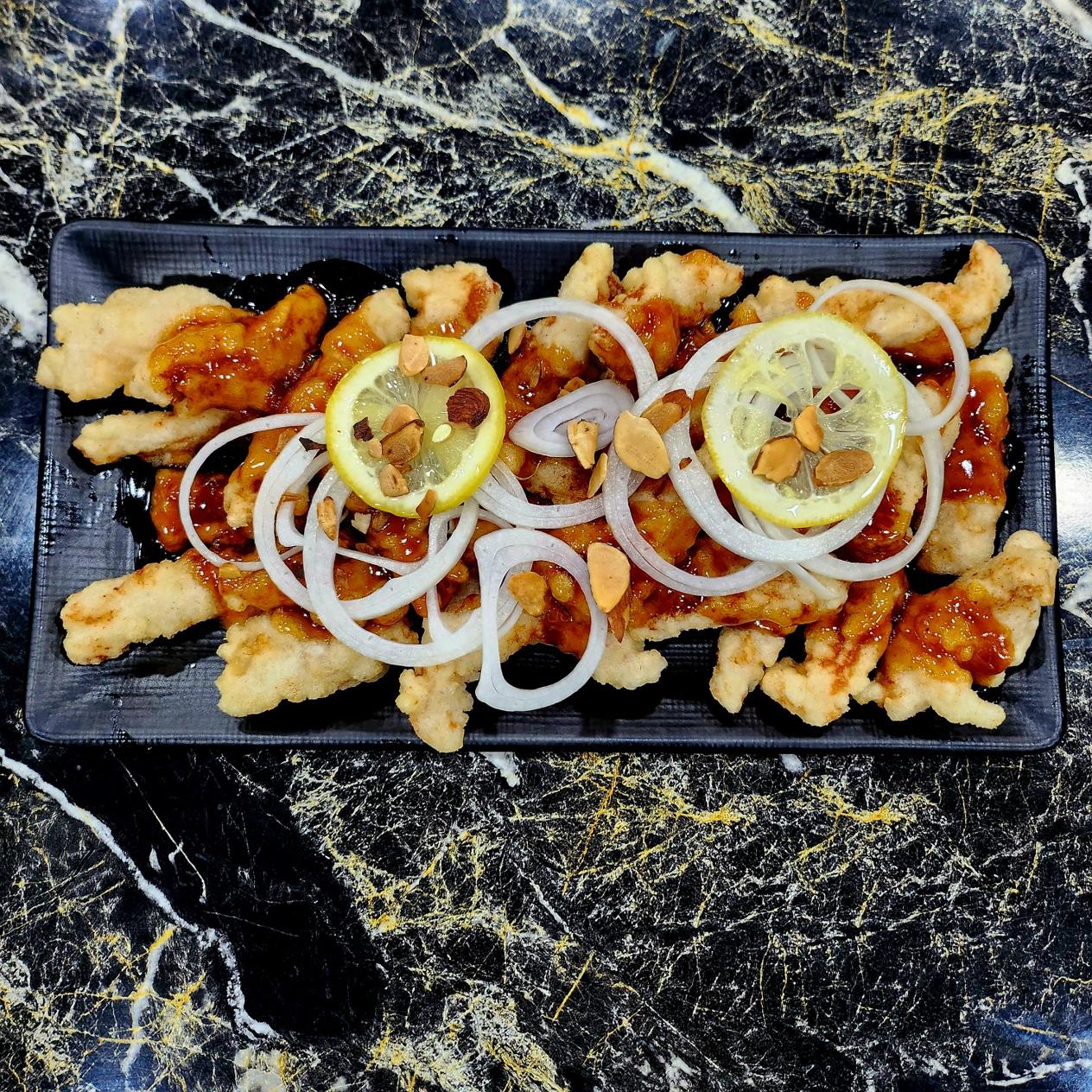 두툼한 탕수육과 쫀득한 찹쌀피 조합