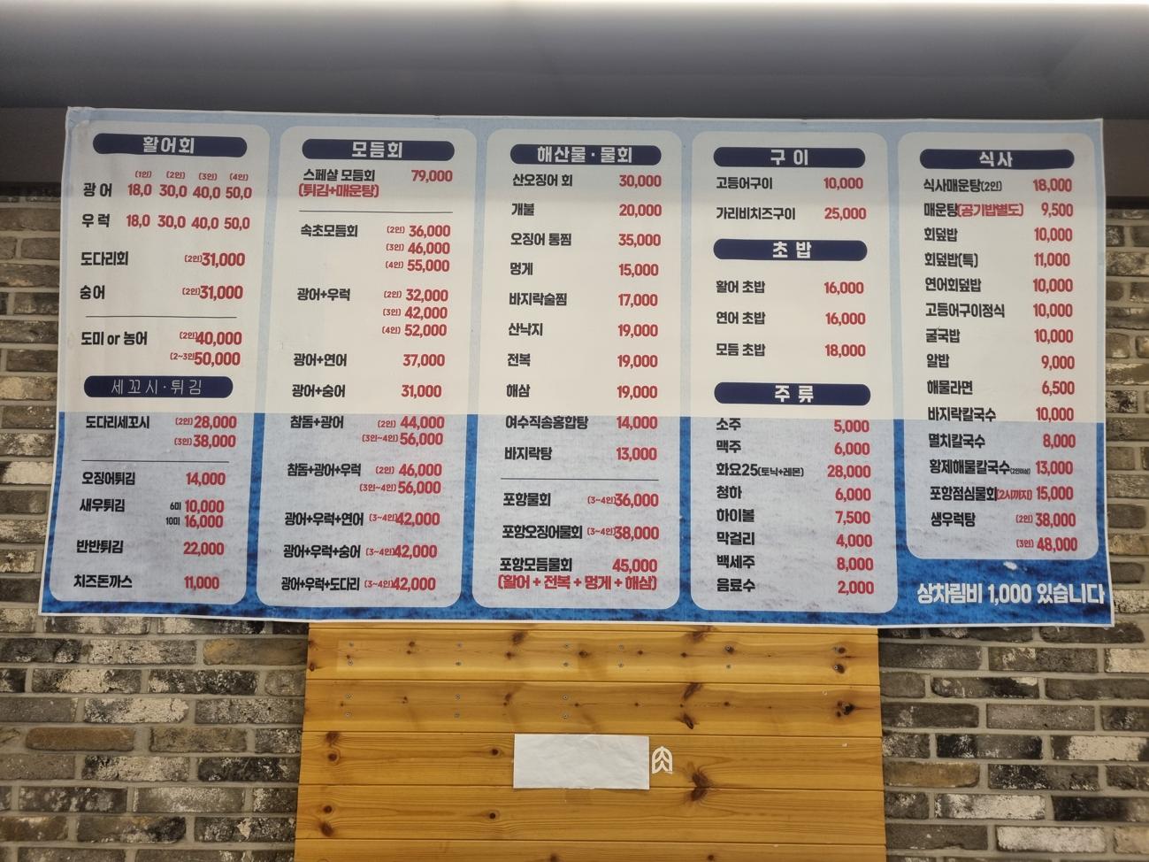 키워드: 물회, 광어, 오징어회, 우럭, 속초모듬회
