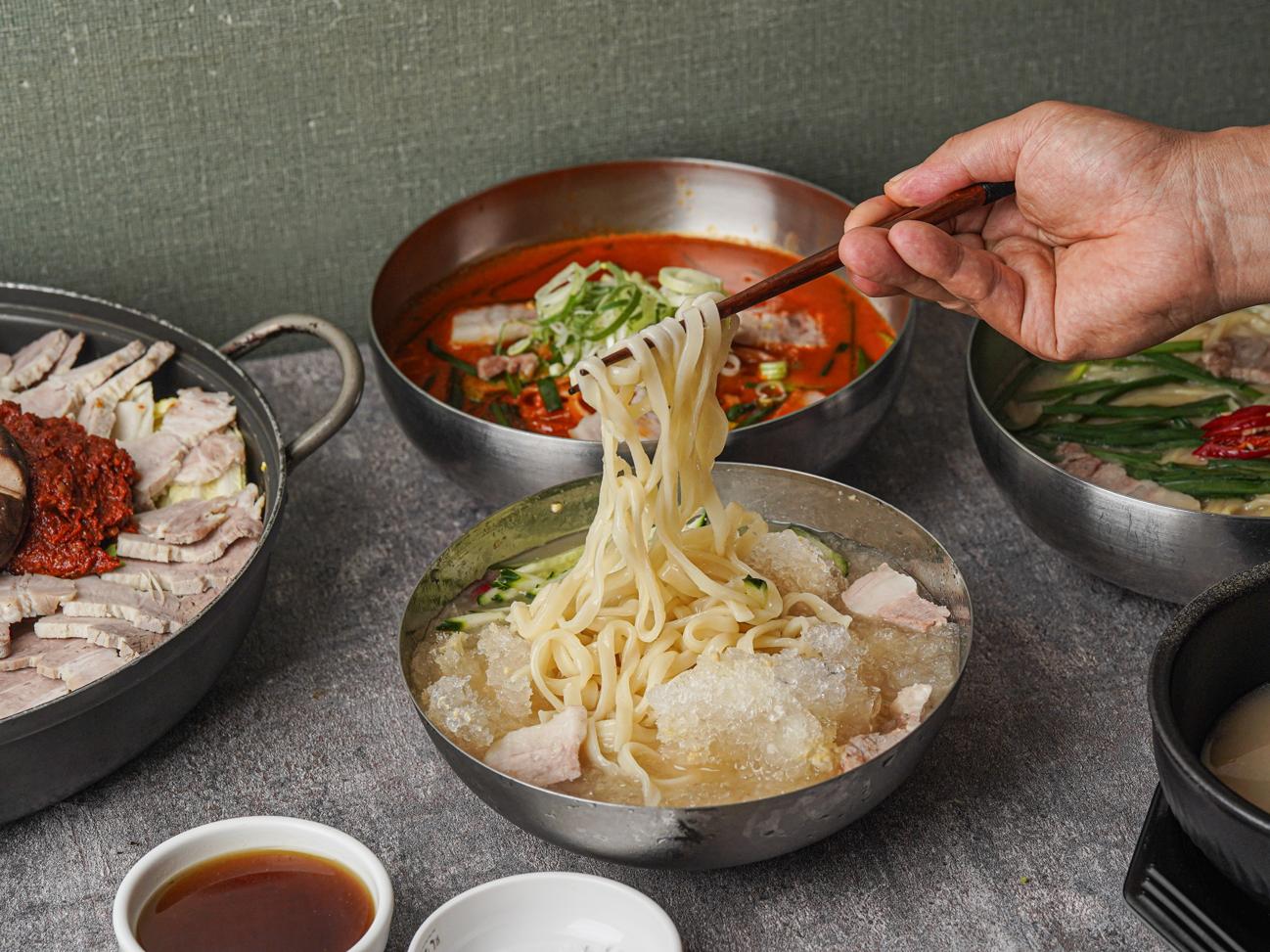 키워드: 부산돼지국밥, 막국수, 보쌈, 비빔막국수, 돼지국밥