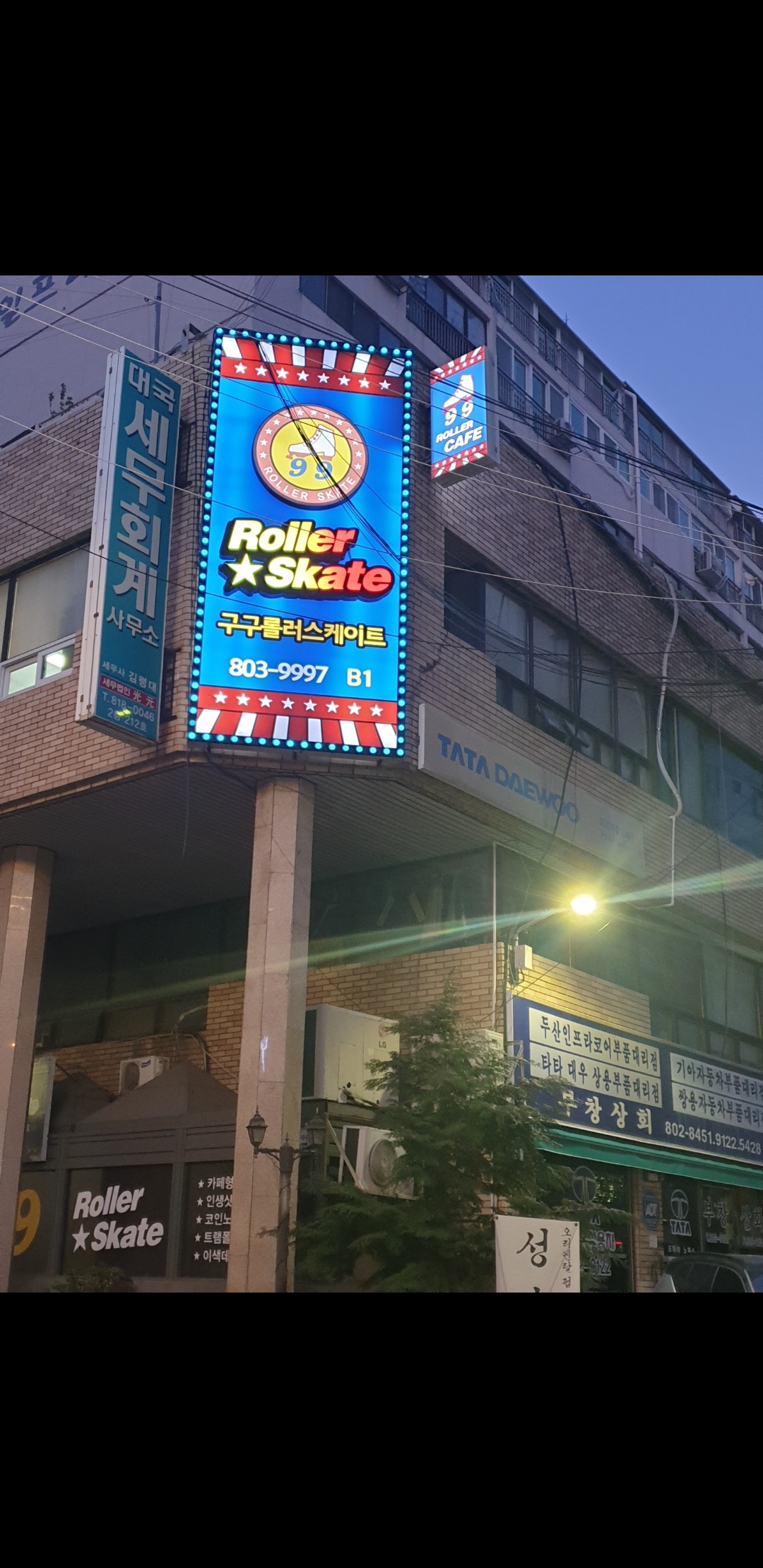 구구롤러장 건물상가 1층과 건물주위 상가 앞 주차가능