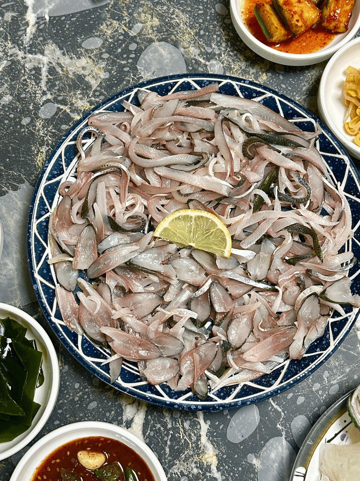 정갈한 밑반찬과 함께하는 신선한 회