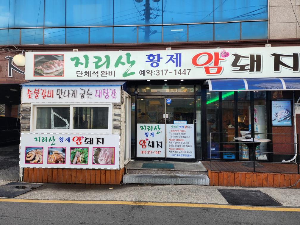 부산서부사상버스터미널 뒷편, 삼성스토어 사상 사이 골목으로 들어와 88미터 직진하면 '지리산황제암돼지'가 있습니다 :)