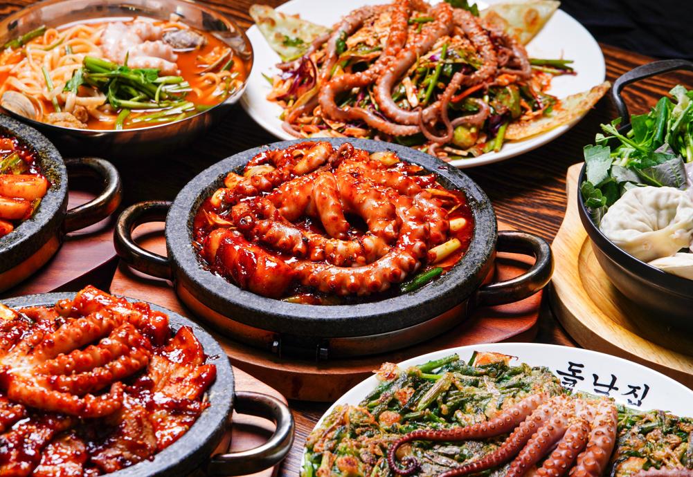 돌판에서 즐기는 싱싱한 낙지의 풍미