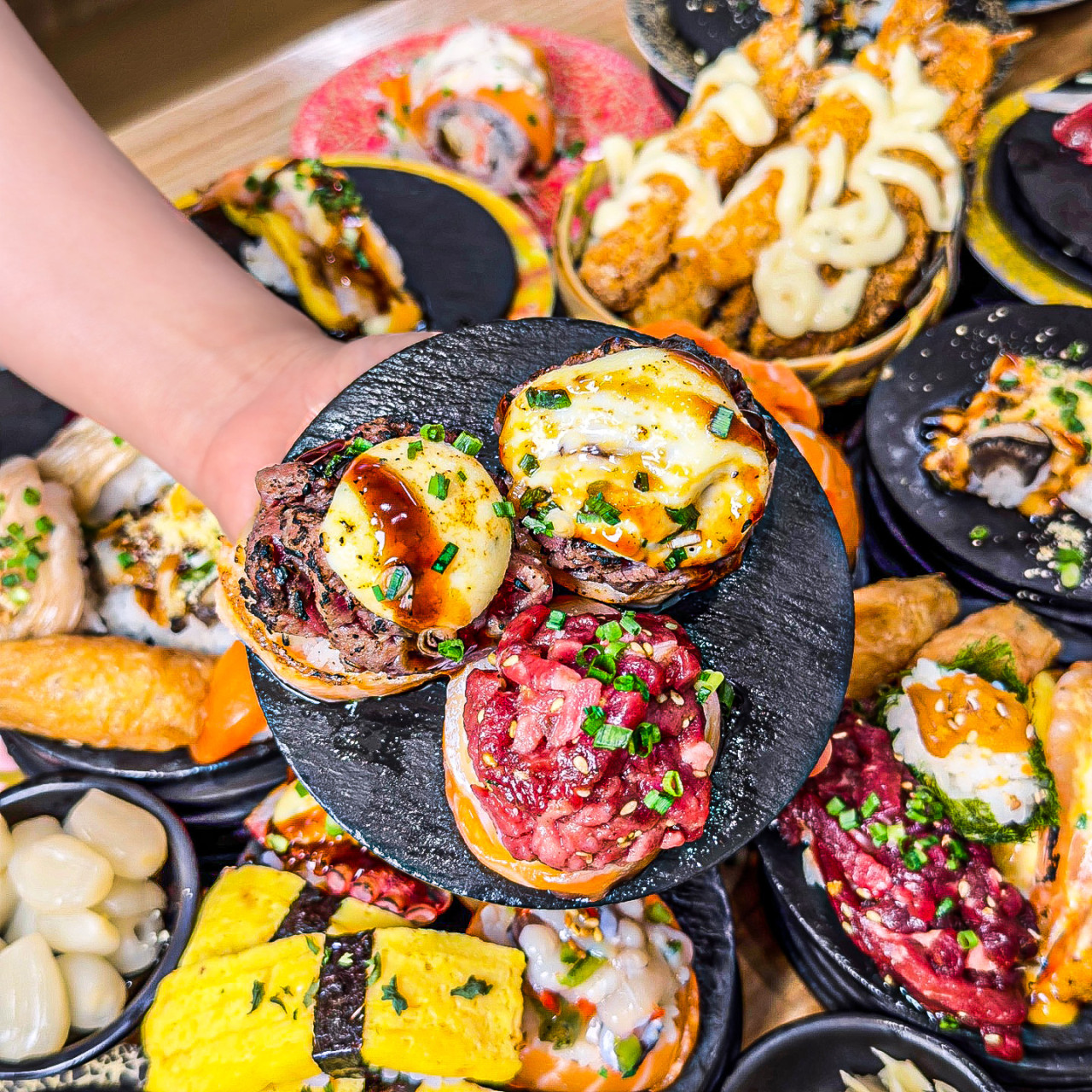 키워드: 스시, 연어초밥, 육회초밥, 광어초밥, 신중동역회전초밥