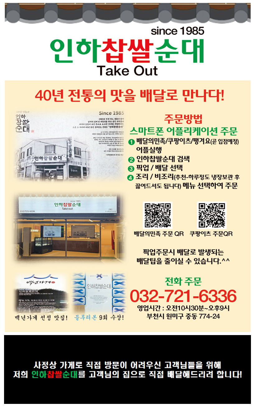 오시는 길: 송내 남부 역 1번 출구를 나와서 50m정도 걸어오시면
