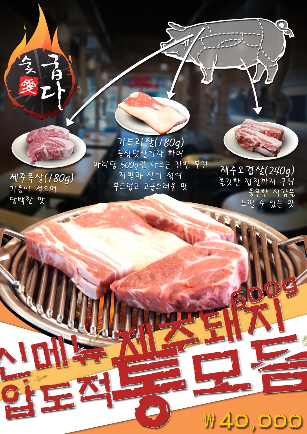제주 오겹살의 숯불 향이 살아있는 맛