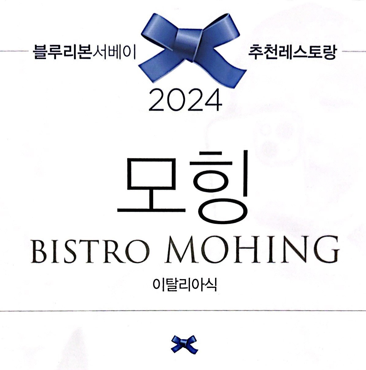 그 사이 골목으로 70m 들어오시다 보면 오른쪽 2층에 bistro MOHING [모:힝] 간판이 보입니다.