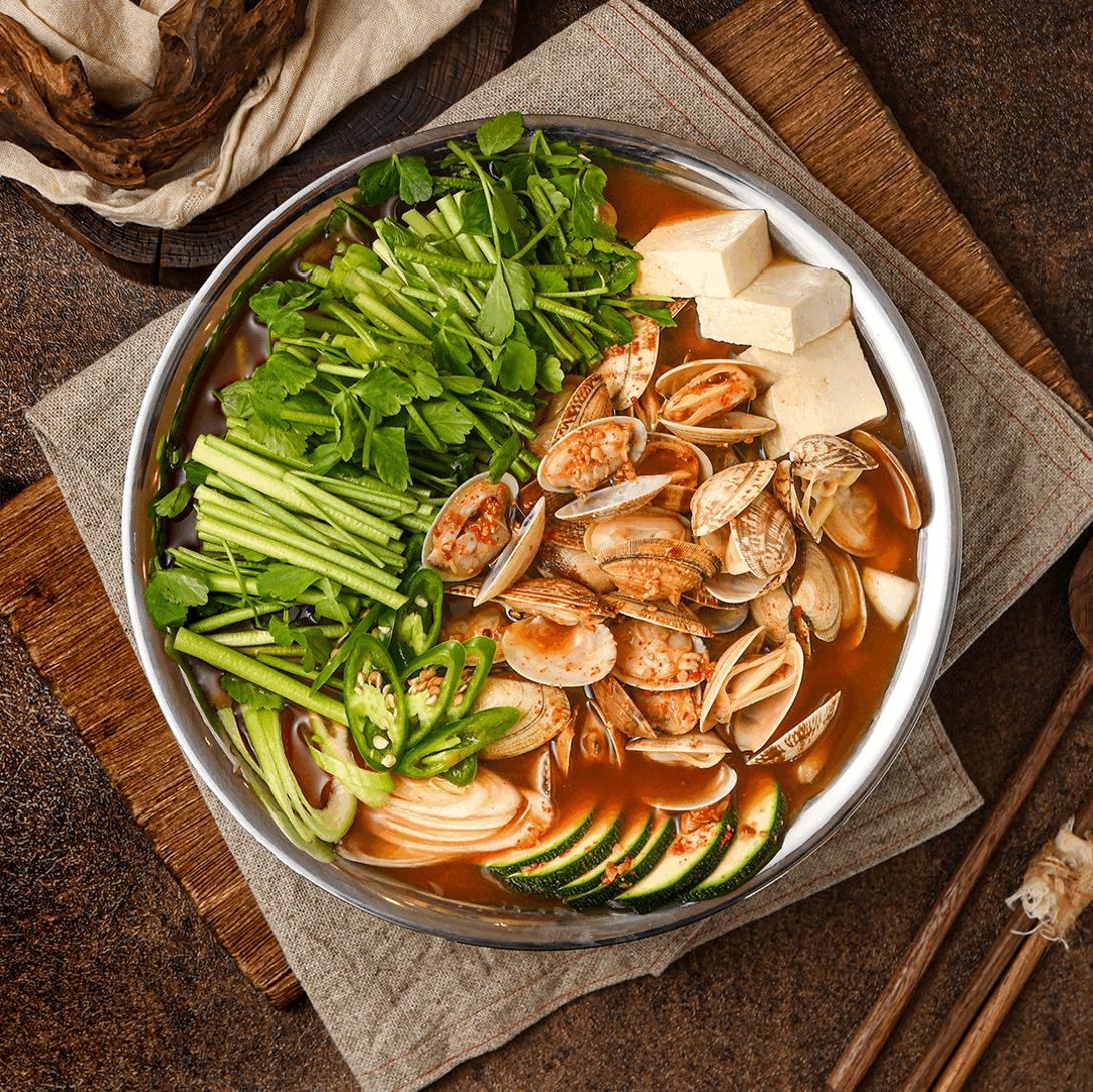 신선한 재료로 만든 깔끔한 샤브칼국수