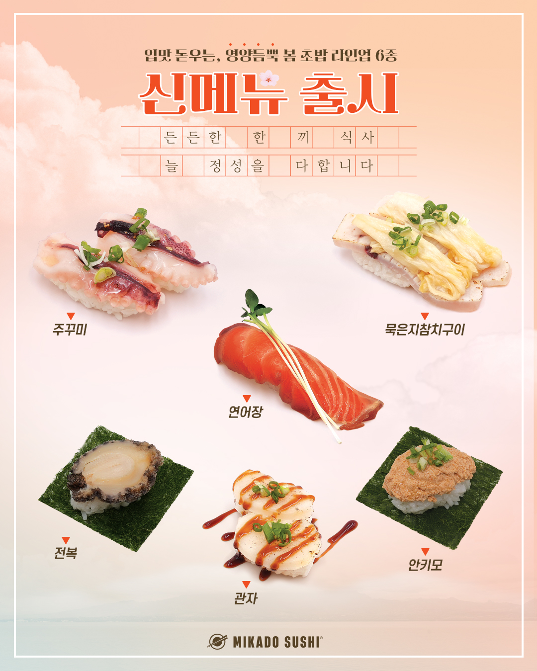 키워드: 연어초밥, 초밥, 은계초밥, 간장새우초밥, 우동