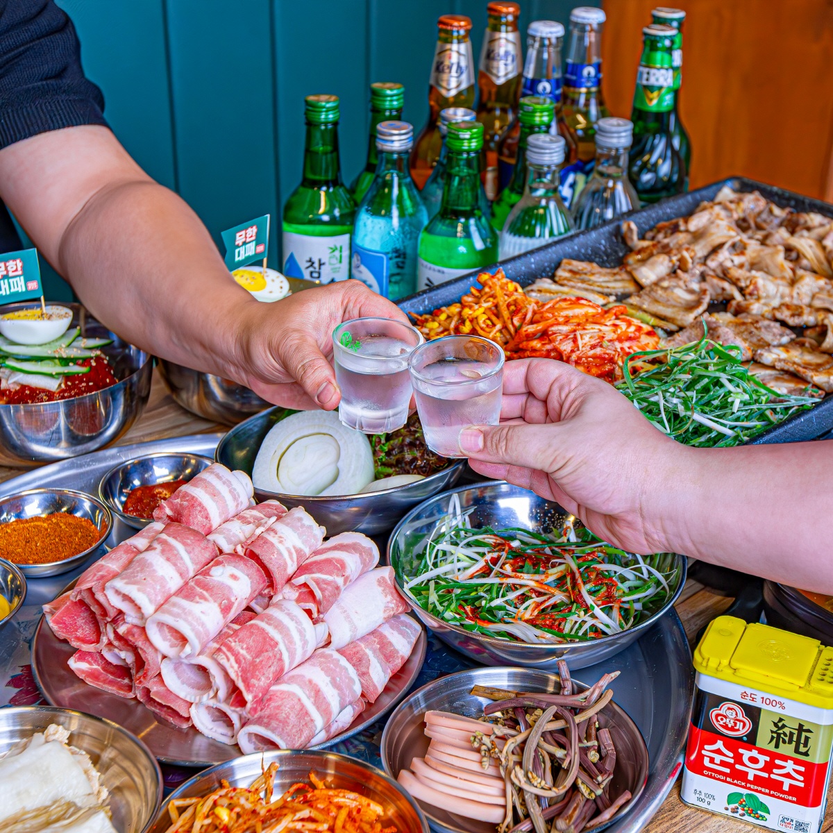다양한 반찬과 함께하는 삼겹살의 매력