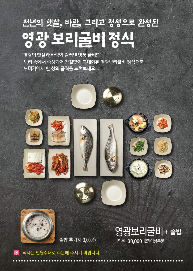 키워드: 보리밥, 해물파전, 청국장, 누룽지백숙, 돈까스